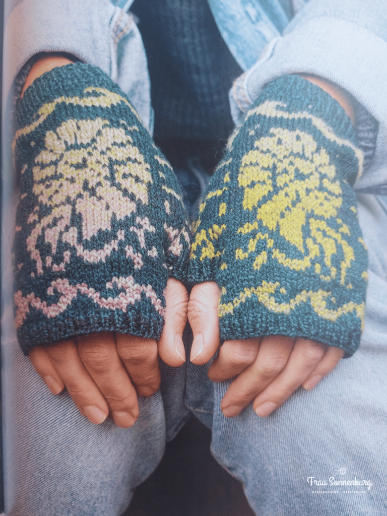 Die Mütze, Handstulpen und den Pullover kann man einfach nach Anleitung nachstricken. Aber – und das finde ich wirklich großartig – man kann auch sein eigenes Design entwickeln und es auf der jeweiligen Grundanleitung aufbauen. Zu jeder der drei Anleitungen gibt es nämlich eine Doppelseite mit grundsätzlichen Überlegungen zur Anleitung und dem verwendeten Muster, sowie ein Blankoraster, in dem man sein eigenes Design einzeichnen kann. Die Idee finde ich wirklich klasse!