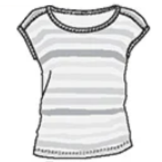Ein gerade geschnittenes Shirt mit rundem Ausschnitt, überschnittenen Schultern und separat zugeschnittenen Schulterteilen. Ausschnitt- und Ärmelkante werden eingefasst. Da keine Ärmel zugeschnitten werden, kommt der Schnitt mit sehr wenig Stoff aus.